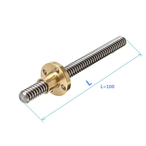 POWERTOOL - Vite e dado T8 in acciaio inox filettato, barra di guida lineare per stampante 3D (100 mm con dado)