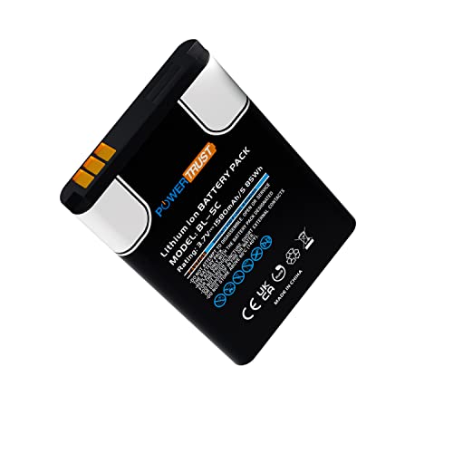PowerTrust Confezione da 2 batterie BL5C BL-5C da 1580 mAh per Nokia 2112, 2118, 2255, 2270, 2280, 2300, 2600, 2610, 3125, 3230, 1100, 1600