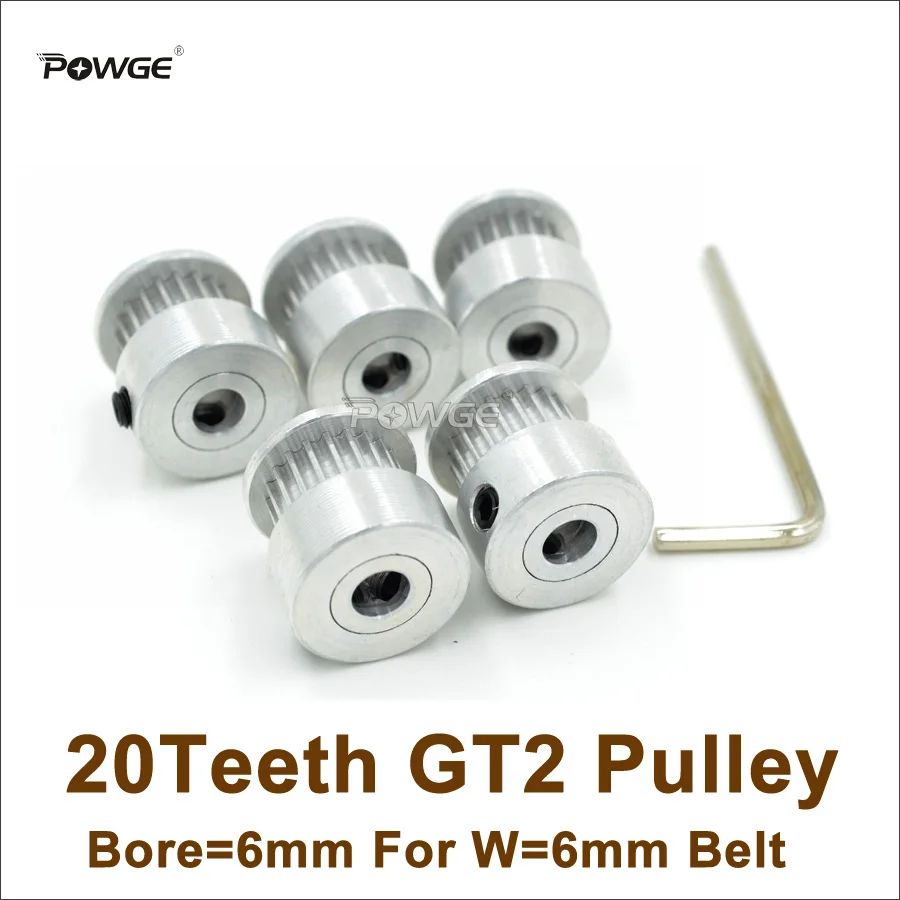 POWGE 5pcs 20 Teeth 2GT Timing Pulley Bore=6mm Fit Width=6mm 2GT Timing Belt 3D Printer Parts 20T 20Teeth GT2 Pulley