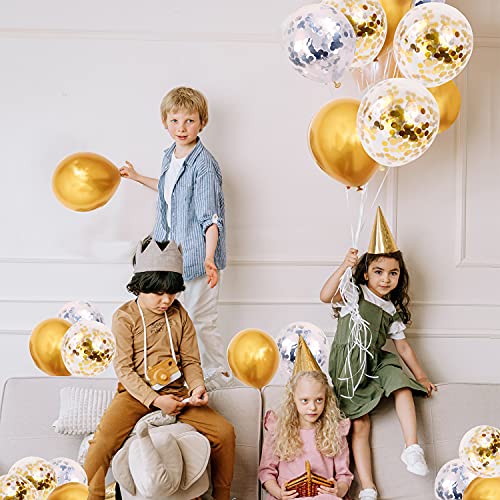 Powmag Palloncini con coriandoli, 40 Pezzi Paloncino per festa compleanno, Palloncini per Compleanno per Decorazione Compleanno Feste Matrimonio elio Battesimo Prima Comunione Laurea Halloween (Oro)