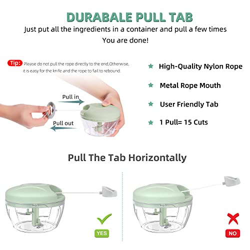 Powmag Tritatutto Manuale, Mini Tritatutto Manuale, 500ml Chopper Tritatutto, Tritatutto Manuale con Corda, Sminuzzatore Manuale per Cipolle, Erbe Aromatiche, Aglio, Frutta, Prezzemolo