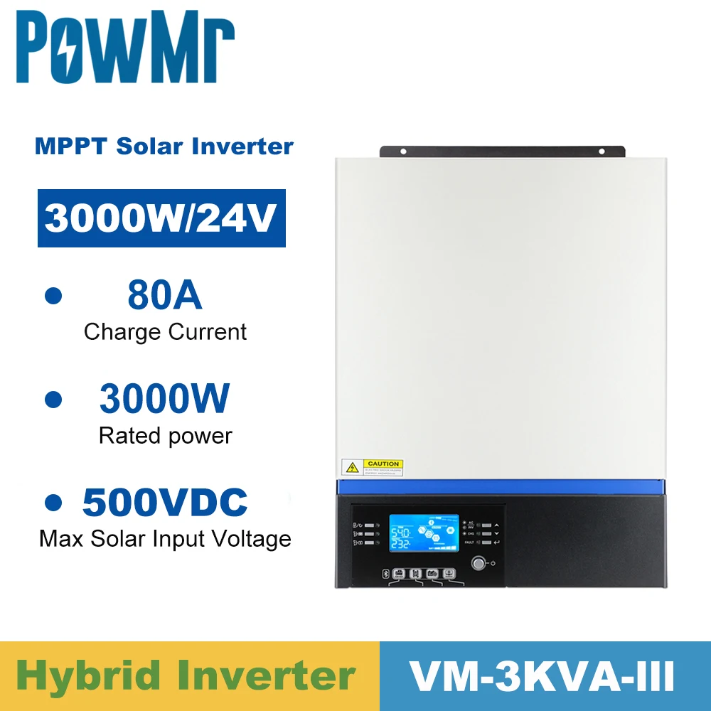 PowMr 3KW Pure Sine Wave Solar Inverter MPPT 80A Solar Panel Charger and AC Charge 230VAC Solar Charge Controller With Bluetooth