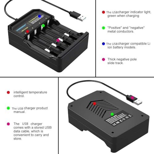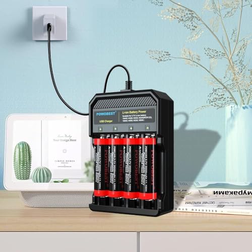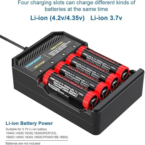 POWOBEST Caricabatterie USB 18650, compatibile con 3,7 V, agli ioni di litio IMR INR 14500, 14650, 18350, 18500, 18650, RCR123A, 18490, 16340, 17670, POWO18B,