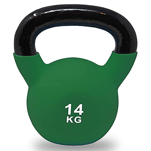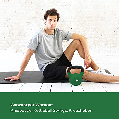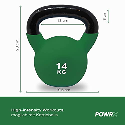 POWRX Kettlebell ghisa 14 kg - Ideale per esercizi di »Functional Fitness« - Rivestimento in neoprene & Presa antiscivolo + PDF workout (Verde scuro)