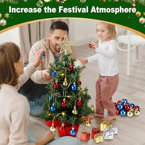 POWZOO Albero di Natale Artificiale 50cm,Mini albero di Natale piccolo,con luci a LED e Ornamenti da Appendere Per Decorazioni,per Natale, casa, cucina, tavolo da pranzo decorazione.