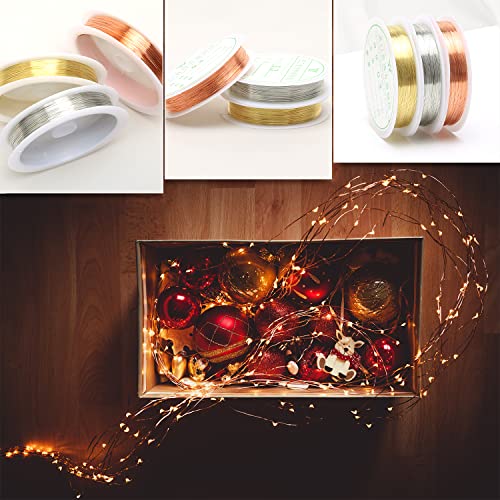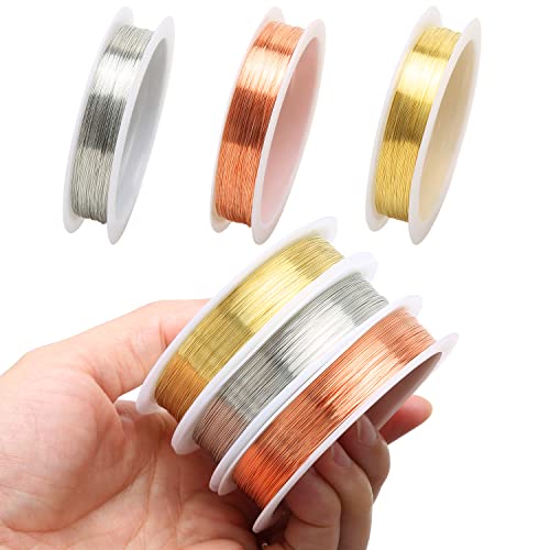 POXIAOER Filo per gioielli, 90 m, 6 rotoli da 0,3 mm/15 m, filo per fai da te, filo sottile per composizioni floreali e creazione di gioielli, filo di rame argento/oro/oro rosa