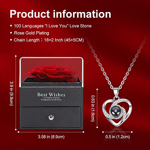 POYET Rosa Stabilizzata Vera Rosa Eterna Confezione Regalo con Collana I Love You, Idee Regalo Donna per Fidanzata Moglie Mamma Compleanno San Valentino Anniversario Compleanno Matrimonio Natale