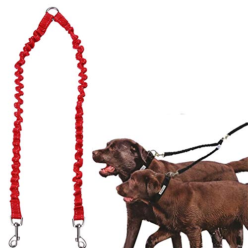Ppactvo Guinzaglio per Cani Guinzaglio Cane Guinzaglio per Cani Doppio Regolabile con Tampone Elastico E Striscia Riflettente per Cuccioli, Guinzaglio per Cani di Taglia Grande Red