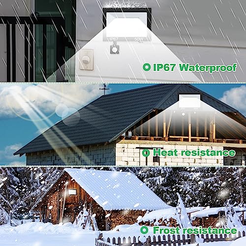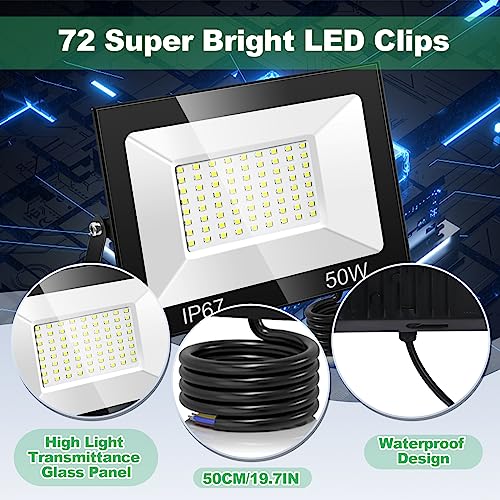 【50W Super Luminoso ed Economico】Il faretto a LED adotta 72pcs LED di alta qualità con flusso luminoso fino a 5000LM, sostituendo le tradizionali lampade a incandescenza da 300W, con un risparmio energetico superiore all'85%, la luce bianca fredda 7000K può illuminare un'area di circa 50 metri quadrati, e la durata è fino a 50.000 ore o più.