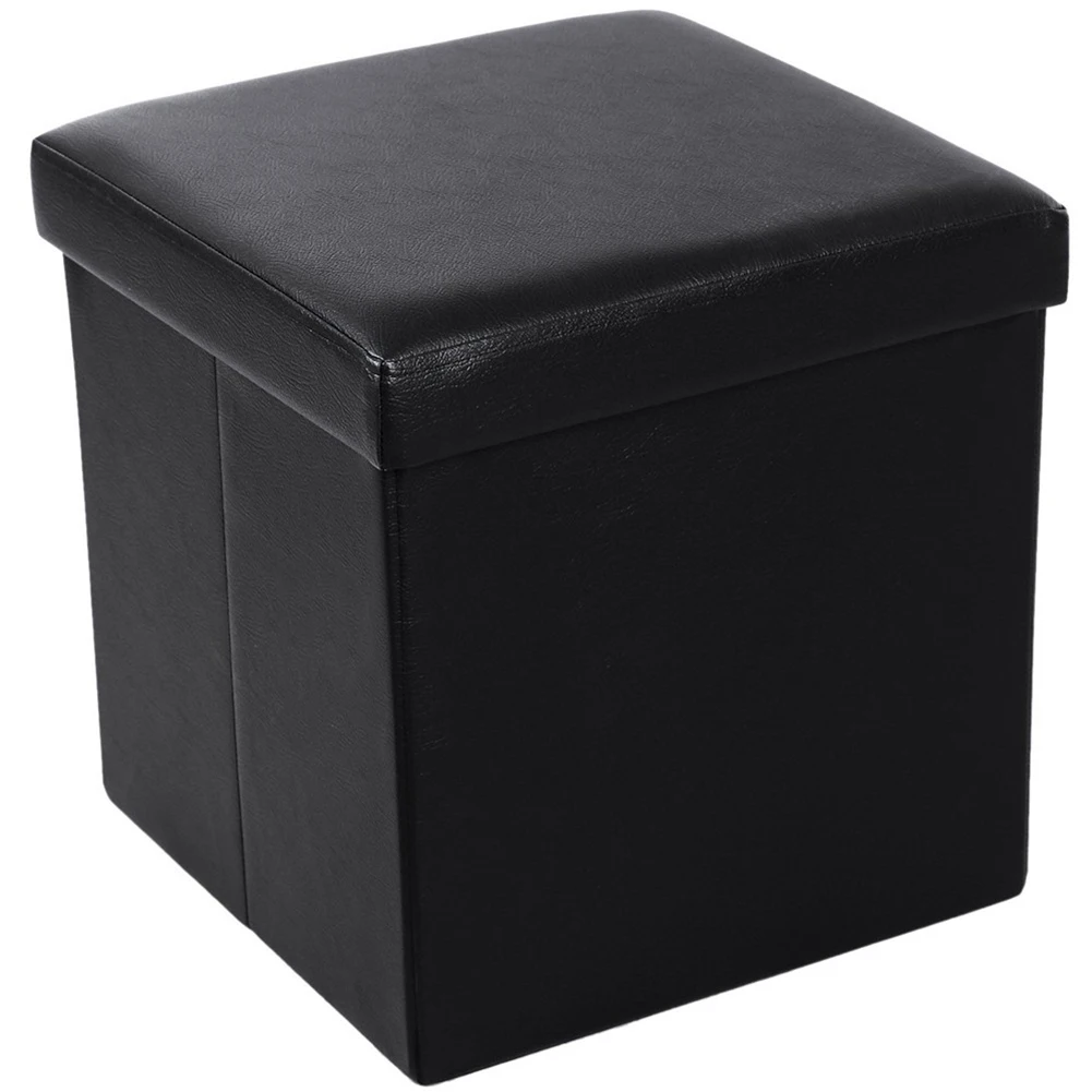 Practical Square Shape Footstool Black Leather Waterproof Easy Move for Children Adults Fishing Household Supplies