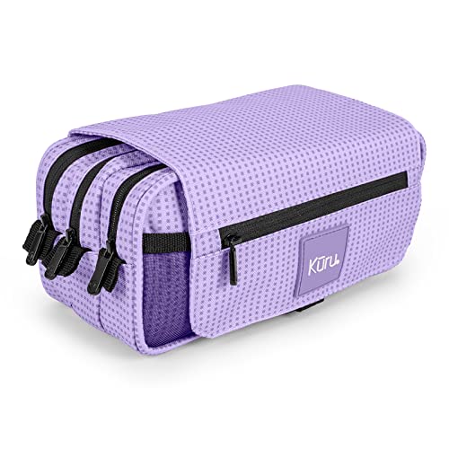 PracticDomus Astuccio portapenne triplo con ampi scomparti interni con cerniera singola per materiale scolastico e viaggio, Kuru Lavanda, Borse scolastiche