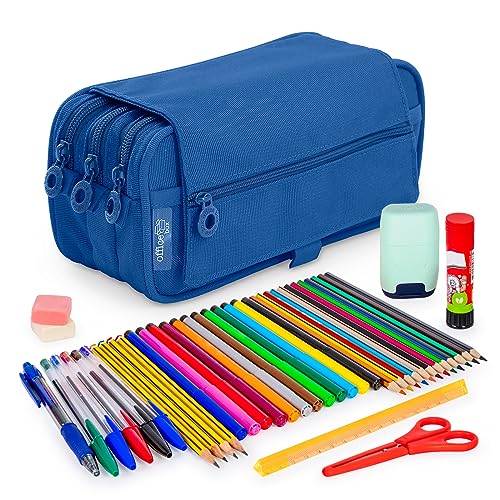 PracticDomus ColePack Set di Astuccio Scolastico Triplo con 3 Cerniere e Materiale Scolastico delle Migliori Marche Incluso (Bleu F.)