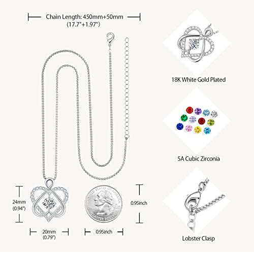 Praelinos Collana Donna Amore Cuore Birthstone Collana con Ciondolo Gioielli Placcato Oro Bianco Carati Zirconia Cubica Regali per Mamma Moglie Fidanzata Lei Compleanno Anniversario (Bianco)