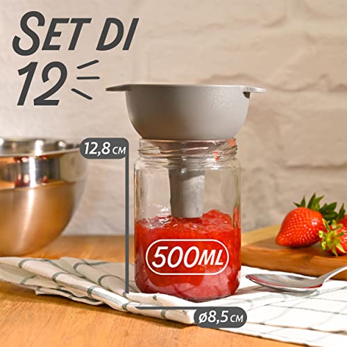 Praknu 12 Barattoli di Vetro per Conserve 500 ml - Con Etichette e Pennarello - Ermetici - Lavabili in Lavastoviglie - Ideali da Regalare