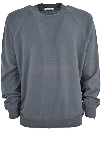 Pratino Pullover Uomo Girocollo Modello Felpa Manica Raglan - 100% Puro Cachemire 2 Fili - Grigio, XL