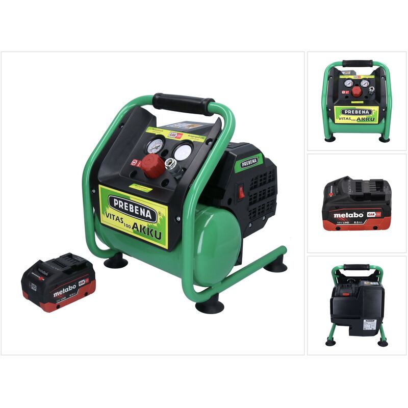 Contenuto della confezione: - 1x Compressore Prebena VITAS 100-AKKU - 1x batteria Metabo LiHD 8.0Ah 18V (625369000) Sistema CAS - senza caricabatterie Descrizione del prodotto: Il VITAS 100-AKKU è un potente compressore a batteria di Prebena che convince per la sua pressione massima di 8 bar e, soprattutto, per il suo design compatto. È dotato di manometri per la pressione del serbatoio e la pressione di uscita, che assicurano un'eccellente precisione di misurazione. Il suo attacco universale è compatibile con tutti i più comuni sistemi di connessione, rendendolo facile da usare. Questo compressore è inoltre dotato di uno scomparto integrato per una seconda batteria, in modo da averla sempre a portata di mano per un funzionamento ininterrotto. Il VITAS 100-AKKU è inoltre dotato di un robusto motore senza spazzole che ne riduce l'usura e ne prolunga la durata. Prebena è un noto produttore di utensili pneumatici e chiodatrici, che si distingue soprattutto per la sua appartenenza al
