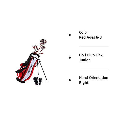 Precise X7, Il Set Junior per destrimani Include: Driver (38,1 cm), Legno Ibrido (22), 6/7 Ferri, 9/p Ferro (1 Pezzo), Putter, Bonus Stand Bag e 2 copricapi. Bambino, Rosso età 6-8 Anni, Right Hand