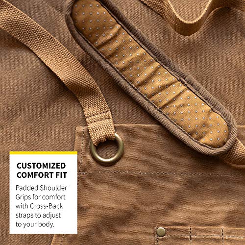Precision Defined PD Grembiule da Falegname in Tela con Spalline, Marrone, 9 Tasche per Attrezzi Incrociate sul Retro | Grembiule da Carpentiere, Cucitura in Pelle