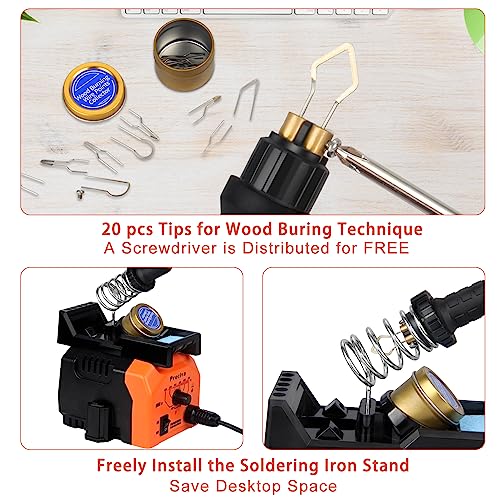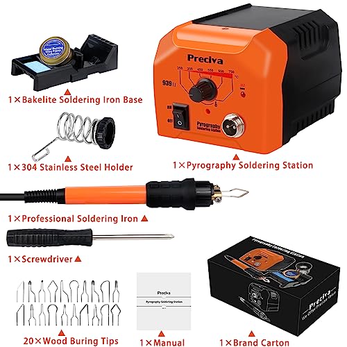 Preciva Kit di Pirografia per Legno,40W/220V Pirografo Professionale Regolabile con Penna e 20 Filamenti di Saldatura per Legno, Pelle e Sughero