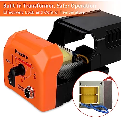 KIT PIROGRAFIA LEGNO DA 40W CON TRASFORMATORE:Preciva offre un trasformatore di alimentazione da 40W. Questa stazione può raggiungere la temperatura operativa entro 10 secondi ed è pronta per l'uso immediato. Fornisce calore costante per completare il lavoro di combustione in modo uniforme. La velocità di raffreddamento del saldatore rimane costante anche dopo lo spegnimento, semplificando la sostituzione della testa.