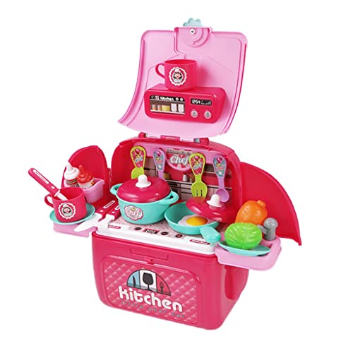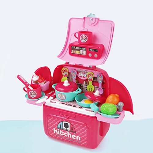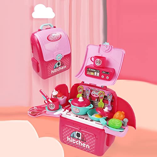 Predolo Simulazione Portatile Giochi di Imitazione Zaino Giochi di Ruolo Giocattolo Educativo per Bambini Scuola Playset Bomboniere per Ragazz, Cucina Rosa