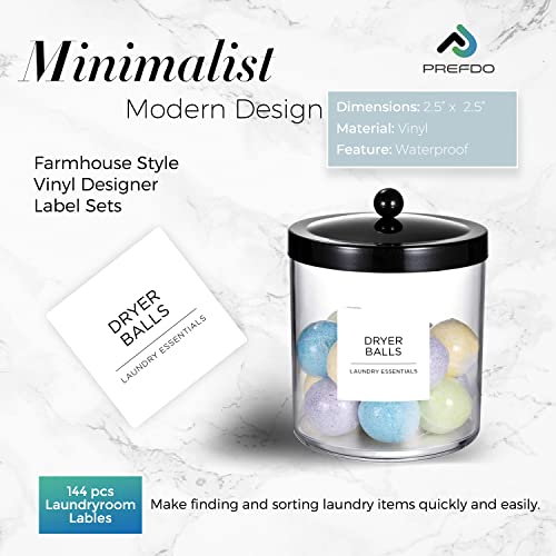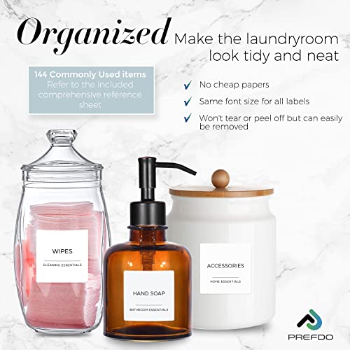 Prefdo, Set di 144 etichette per lavanderia, prestampate, colore bianco, minimalista, autoadesivi per la casa, armadio della biancheria, bagno e articoli per la pulizia
