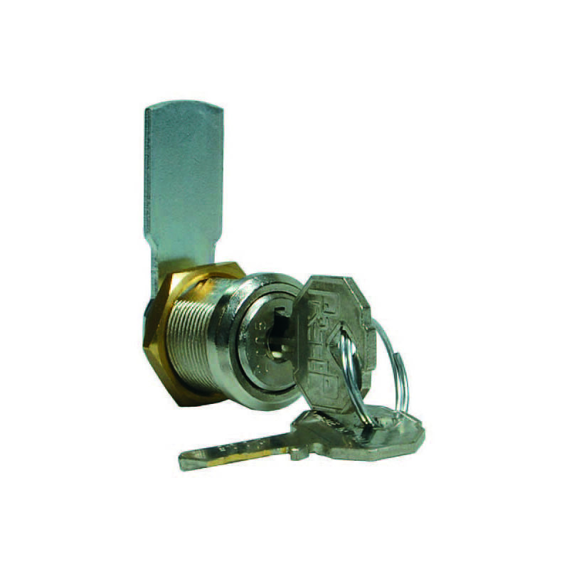 Ø mm.19 - rotazione chiave 180° a 2 estrazioni, fissaggio con dado e levetta zincata applicata, cilindro in zama nichelato a lamelle con 2 chiavi