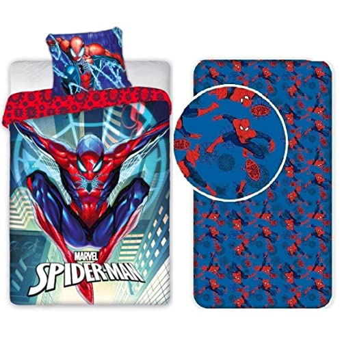 L.T.Preferita Spiderman Uomo Ragno 3pezzi Set Letto Singolo Copripiumino 160x200 cm + Federa + Lenzuola con Angoli