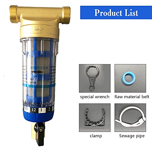 Prefiltro Potabile Extra Maglia Filtro Dell'acqua Spin-Down Depuratore Riutilizzabile Sedimenti Filtro con 1/2”(3/4) Flusso max 2,5m3/H Testa Ottone, Involucro Trasparente (3/4'')