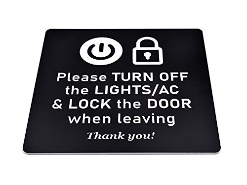 Inciso - con scritta "Si prega di spegnere le luci/AC e bloccare la porta quando si esce, grazie" e simboli universali.