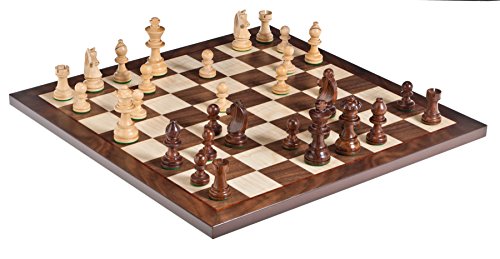Scacchiera in pregiato legno noce canaletta, con filetto in mogano, completamente fatta a mano in Italia da artigiani esperti e appassionati.