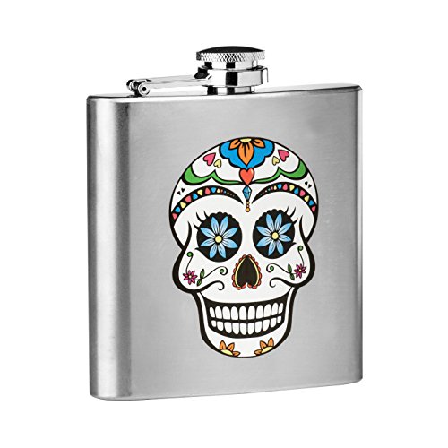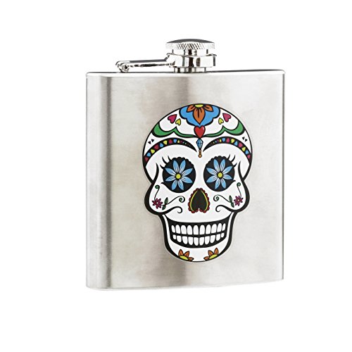 Un sorprendente design a teschio con belle e colorate caratteristiche decorative conferiscono alla fiaschetta un look chic