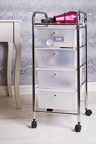 Premier Housewares Carrello con 4 cassetti, telaio cromato, 81 x 39 x 33 cm, colore: Bianco