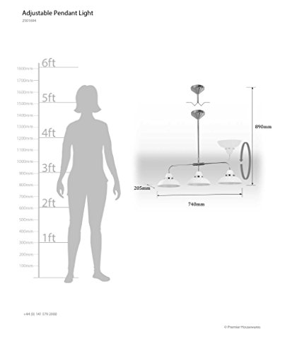 Premier Housewares Lampada a Sospensione, 3 Coprilume, Bianco e Cromato