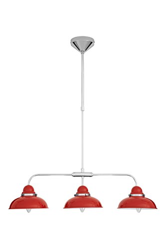 Premier Housewares Lampada a Sospensione, 3 Coprilume, Rosso e Cromato, cromo/acciaio inossidabile