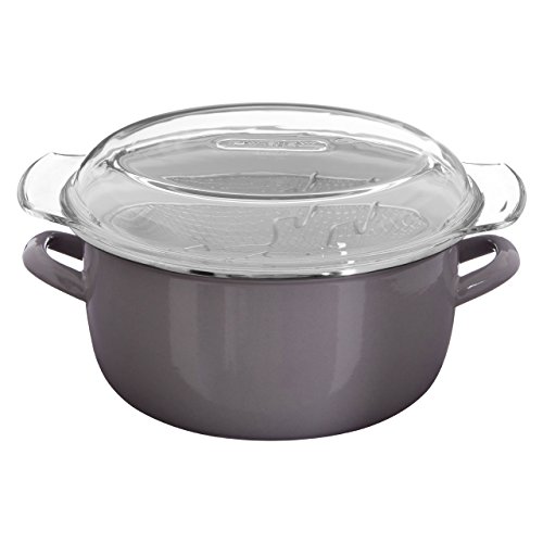 Realizzata in acciaio con rivestimento in smalto grigio all'esterno con un coperchio in vetro, questa friggitrice è stente.
