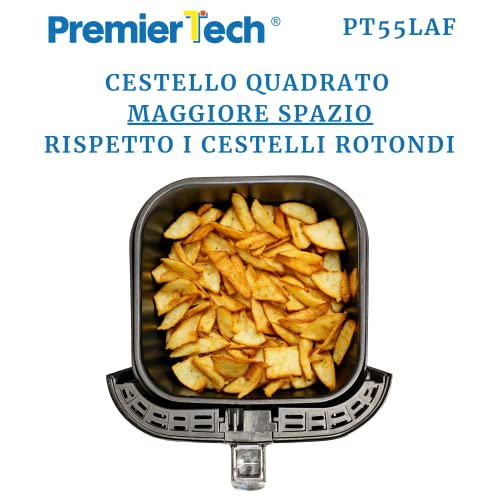 PremierTech Friggitrice ad Aria da 5,5 Litri Friggi senza Olio, 7 Programmi, Touch Screen, Cucina Sana, Griglia, Arrostisci, Scongela, Riscalda Timer 60° PT55LAF