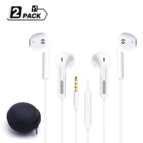Premium auricolari/cuffie stereo con microfono e telecomando per iPhone, iPad, iPod, Samsung Galaxy, Sony, LG, Huawei, HTC, lettori MP3 e altri sia per iPhone e Android auricolari 2PACK WHITE