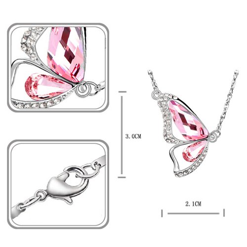 Le Premium Collana placcata in oro bianco 18 k con pendente a forma di farfalla con cristalli Swarovski,rosa chiaro, in confezione regalo