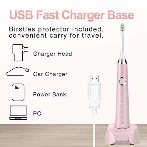 Premium Sonic spazzolino elettrico set per uomini e donne - IPX7 impermeabile testine di ricambio per spazzolino USB ricaricabile W/base & - quattro modalità di spazzolatura