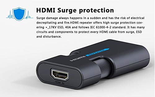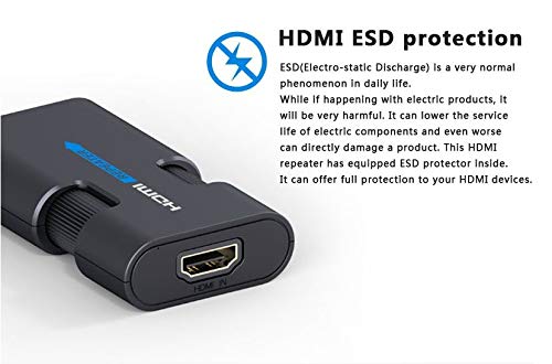 Supporta i più recenti dispositivi della versione HDMI 2.0 e la trasmissione di video e audio in formato 4K x 2K. - L'amplificatore è indipendente, non richiede alimentazione aggiuntiva, plug and play, facile da installare e regolare.. È ampiamente utilizzato nei cavi HDMI e nel cablaggio con segnale nale originale. - Risoluzione DTV: 480i, 480p, 720i, 720p, 1080i e 1080p, 4Kx2K a 30 Hz