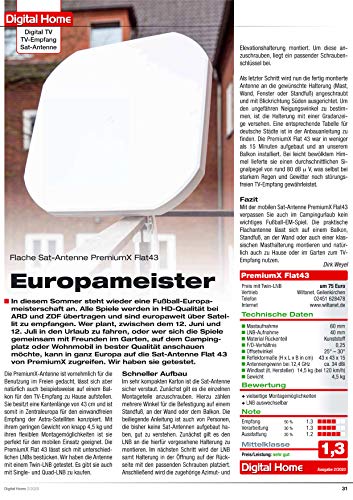 PremiumX FLAT 43 Antenna satellitare piatta con Single LNB per il collegamento a un ricevitore o un dispositivo TV. L'antenna con 43 cm è molto piccola ma potente.