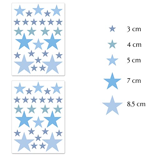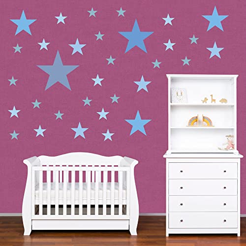 PREMYO Set 54 Adesivi Murali Bambini Stelle - Wall Stickers Muro Cameretta - Decorazione Parete Camera da Letto Blu Pastello