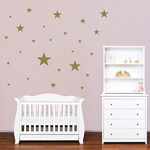 PREMYO Set 32 Adesivi Murali Bambini Stelle - Wall Stickers Muro Cameretta - Decorazione Parete Camera da Letto Oro