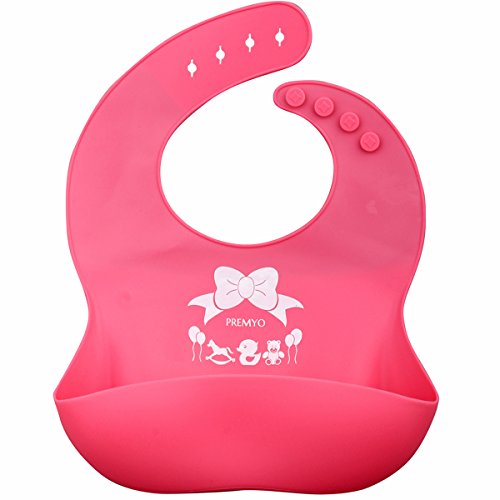PREMYO Set 2 Bavaglino Silicone con Tasca - Impermeabile Morbido per Bimba Neonato - Comodo Regolabile Rosa Viola