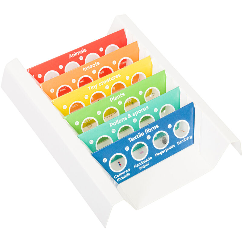 Discovery Channel informa, intrattiene e ispira gli spettatori di tutto il mondo mostrando le meraviglie e la diversità dell'universo. Discovery offre a milioni di persone l'opportunità di scoprire e soddisfare la loro curiosità con un mix coinvolgente di storie di diversi generi, tra cui scienza e tecnologia, esplorazione, avventura, storia, oltre a documentari su persone, luoghi e organizzazioni che plasmano e condividono il mondo in cui viviamo. Siamo orgogliosi di presentare la serie di otticheDiscovery prodotta daLevenhuk e sostenuta da Discovery. Il set di vetrini Discovery Flora & Fauna comprende 24 esemplari trasparenti che possono essere studiati con qualsiasi microscopio biologico a bassa luminosità. Gli esemplari sono completamente pronti per lo studio: vengono messi su un vetrino, trattati con una soluzione speciale e fissati con un vetrino coprioggetti. In questo modo, non dovrete fare tutti questi preparativi. Puoi iniziare a osservarli immediatamente. Tutti i campioni