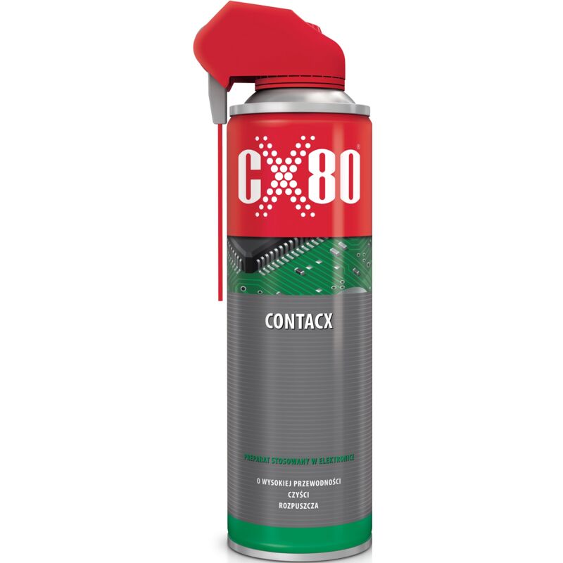 CX80 CONTACX detergenti e solventi, sviluppati appositamente per l'elettronica e l'elettrotecnica. PROPRIETÀ: Rimuove grasso, sporco, vecchi grassi e oli, siliconi, solfuri e ossidi disciolti nonché tutti i residui di saldatura (inclusa colofonia). Schede dopo aver completato l'assemblaggio degli elementi • per eliminare crepe e cigolii dei potenziometri • durante la realizzazione di collegamenti di cavi e bordo-bordo quando è richiesta la massima riduzione della resistenza (assemblaggio computer, hi-end, saldatura). Duo spray 500 ml**