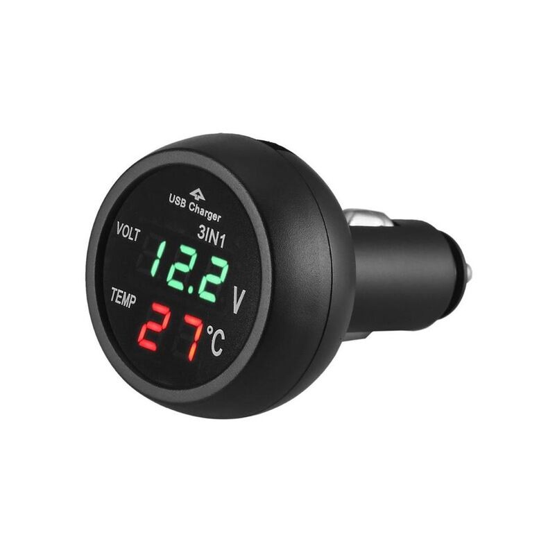 Tre funzioni principali: può caricare il telefono cellulare / tensione della batteria / misurazione della temperatura ambiente. Utilizzato per porte di ricarica USB come smartphone, navigatore GPS e tablet. Uscita USB: 5 V 2,1 A. Tensione di ingresso: 12 V/24 V. Intervallo di misurazione del termometro: da -10° a 80° (misurazione accurata della temperatura del veicolo). Voltmetro plug and play facile da usare con display LCD per uso sicuro del veicolo.