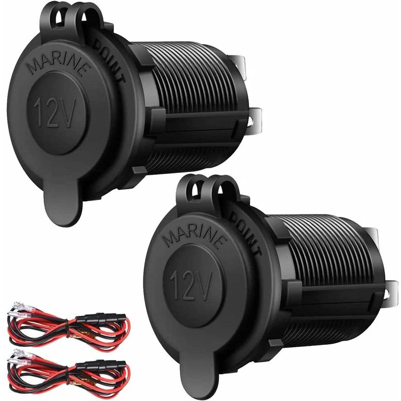 diametro esterno: circa 3,65 cm.) Estremamente adatto per la tua auto, largo Ampiamente utilizzato per alimentare veicoli, GPS, telefoni cellulari, fotocamere, lettori MP3, adatto a qualsiasi imbarcazione, moto, barca, tosaerba, trattore, auto, ecc. FACILE DA INSTALLARE: comodo per l'uso quotidiano. La copertura antipolvere è impermeabile e tiene lontana la polvere. Ogni presa ha un dado di fissaggio contro una piastra. Durevole, ignifugo, plastica dura che resiste a correnti elevate, alte temperature e usura, funziona perfettamente con tutti i dispositivi alimentati da auto e puoi anche utilizzare i connettori che offriamo per una maggiore capacità di carico. FILO DA 39,4 POLLICI: il cavo lungo si adatta alla maggior parte delle auto, non devi preoccuparti che la presa non possa raggiungere l'alimentazione. FUSIBILE DI PROTEZIONE DA SOVRACCARICO: qualsiasi DC 12V/24V o capacità di carico elevata sarà protetto
