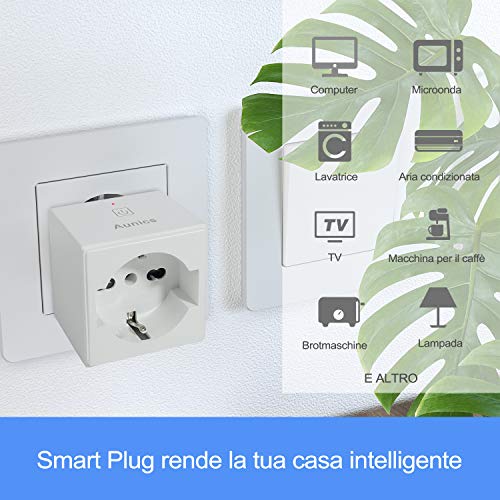 Presa Alexa Aunics Presa Smart, Italiana 2 Pezzi Compatibile con Alexa Amazon, Google Home, IFTTT, Presa Intelligente, Controllo Energia, Spina Wi-Fi App Smart Life, Smart plug per Casa No Adattatore